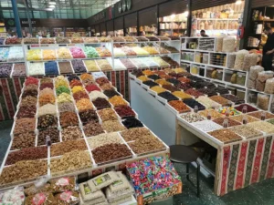 - المكسرات والتوابل الفاخرة: يمكن العثور على مجموعة واسعة من التوابل الشرقية العطرية، وأجود أنواع المكسرات والتمور. ومن أبرز ما يُباع هو الزعفران الأذربيجاني عالي الجودة، الذي يعتبر من أفضل أنواع الزعفران في العالم.